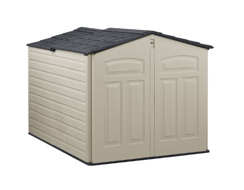 The Rubbermaid 1800005 Sliding Lid Storage Shed is designed to make outdoor storage a breeze. Easy to use sliding roof features a new rolling mechanism that allows the lid to slide back and forth with ease. The shed is Extra deep so it can fit for large, hard-to-store items. The Low profile is designed to meet common 6’ fence height restrictions for homeowners associations and the new exterior design gives it the look of siding along with a shingled roof. The Shed can lock for security and accepts standard pad locks. The shed also comes with 8 wall anchors, allowing you to add organizational products, like shevling or peg boards. The Interior dimensions are 72-Inches Deep, 52-Inches wide and 42-Inches high. This shed even allows you to store most 42-Inch riding mowers, buy simply rolling back the slide lid, riding it in, and then sliding the lid back over it once you get off.